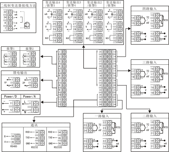★4路萬能信號輸入,可輸入直流電流、直流電壓、毫伏、熱電阻、熱電偶等信號;0.2級測量精度。
